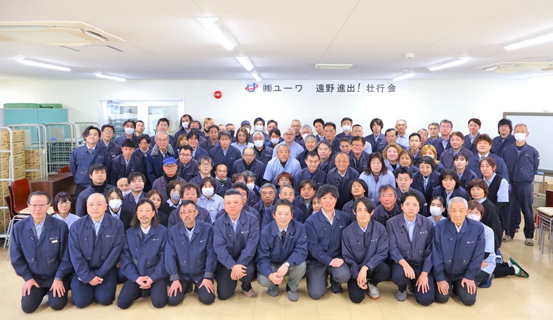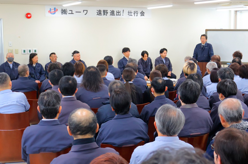 遠野工場の本格稼働に向け、本社にて壮行会を開催しました。